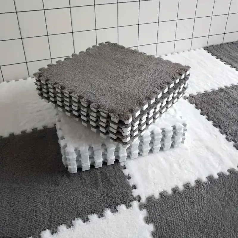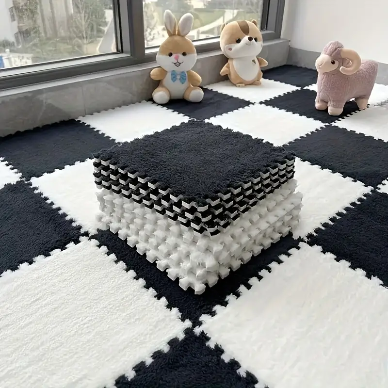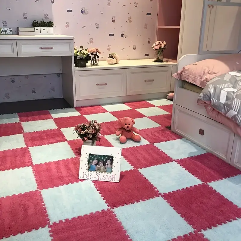 12pcs Pink Plush Riddle Foam Floor Cushion For The Girl's Room, Square Interlocking Cushion, Fluffy Area Cushion, Protective Non-slip Cushion Foam, Floor Cushion, Living Room Nursery Room Decoration,