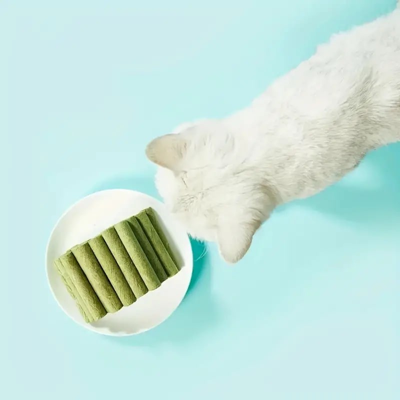 5pcs Cat Grass Stick, Freeze-dried Cat Snacks, Cat Oral Cleaning Treats