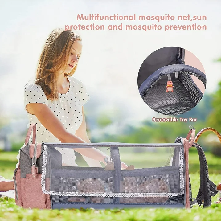 A diaper bag is not just a backpack, but a simple crib, providing you with a safe and hygienic space, allowing you to change diapers at any time or let your baby rest.