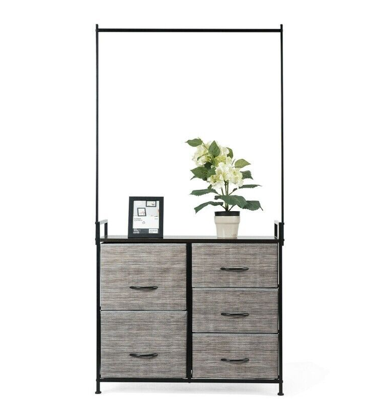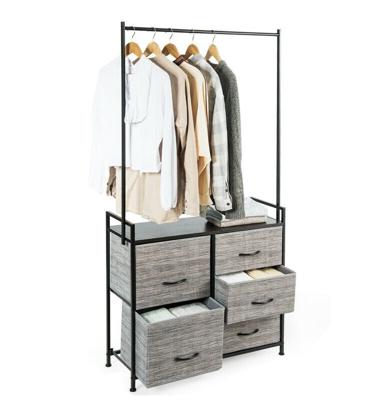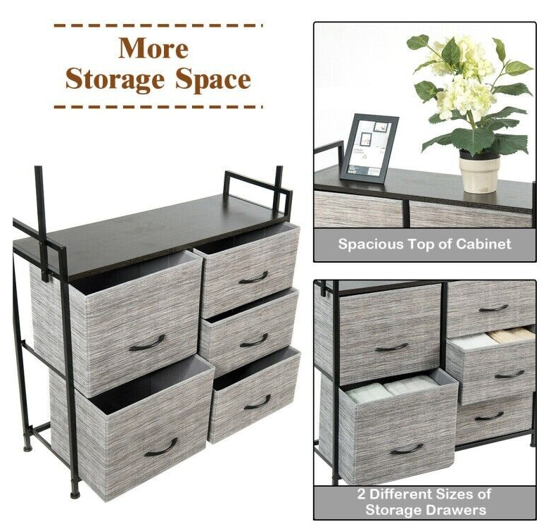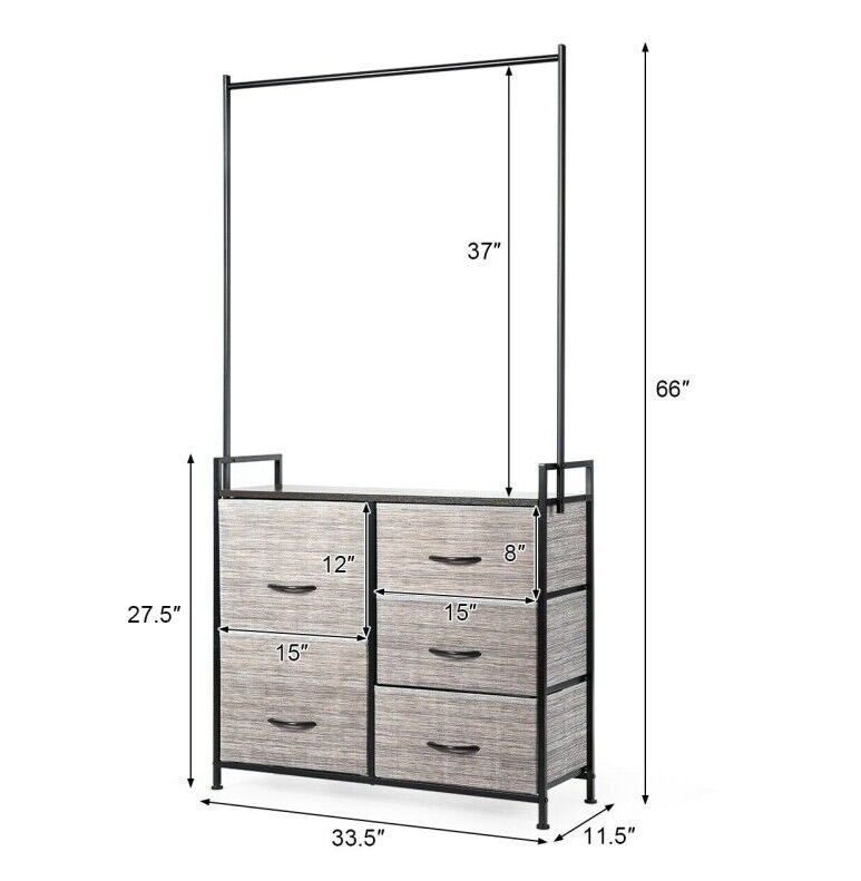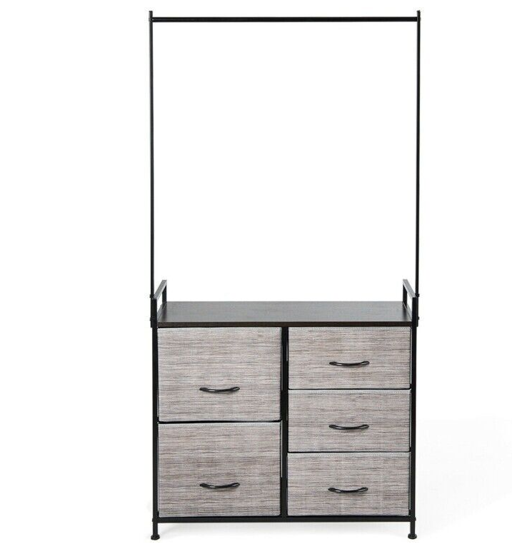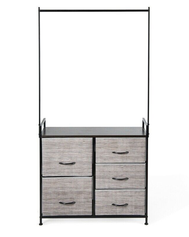 Dresser Hanger Metal Frame Wooden Top Storage Closet Organizer 5-Fabric Drawers