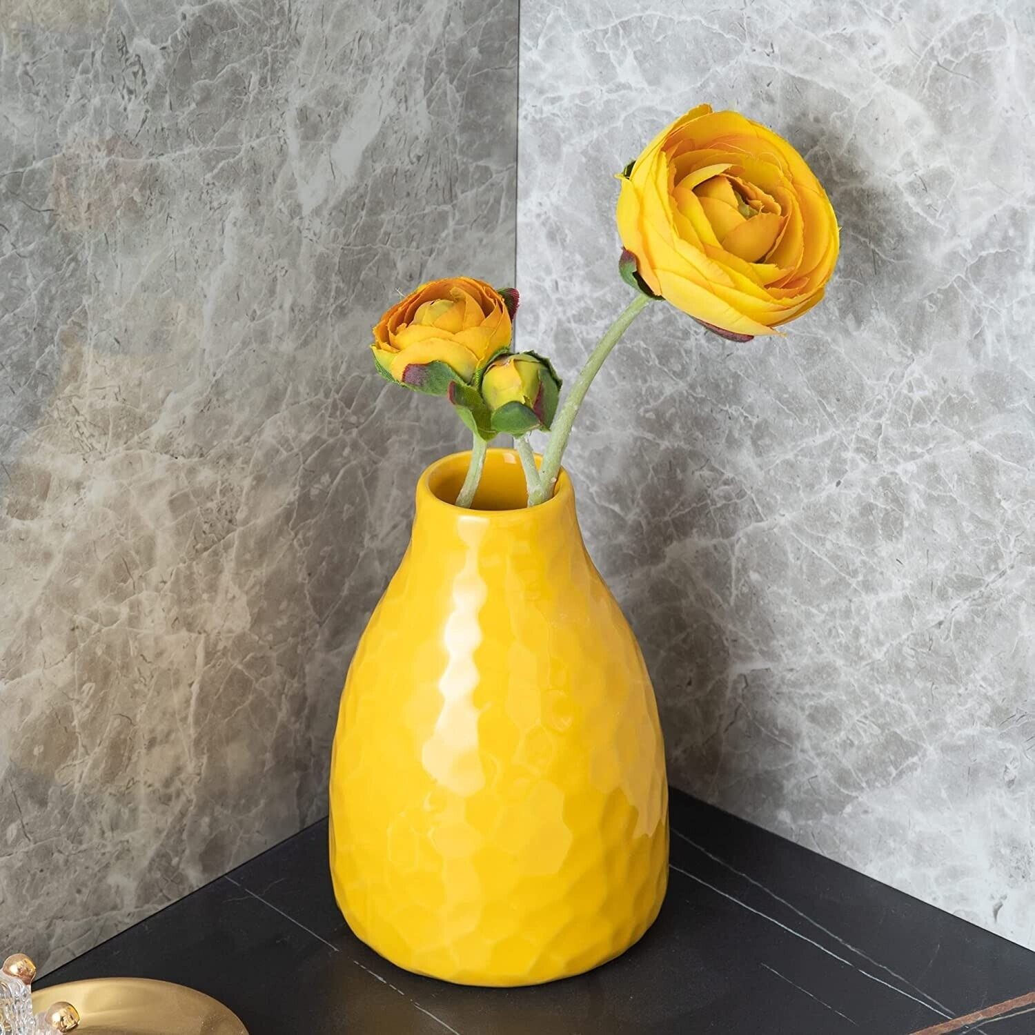Home Living Room Decor Set of 3 Small Yellow Stoneware Ceramic Flowers Vase