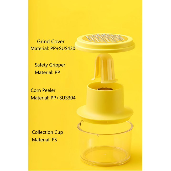 Introducing our new multifunctional corn peeler, it comes with 4part: first is grater cover, which can help to grind garlic, ginger and carrot; second is safe holder, which help you from hurt; third is corn peeler; fourth is transparent collection cup, which can help to collection corn kernel or other food. This corn preparation tools designed to make your cooking experience easier and more enjoyable. Say goodbye to tedious and messy corn peeling with our corn cob stripper peeler, you will love this corn cob stripping tool with collection cup and ginger grater once you get it.