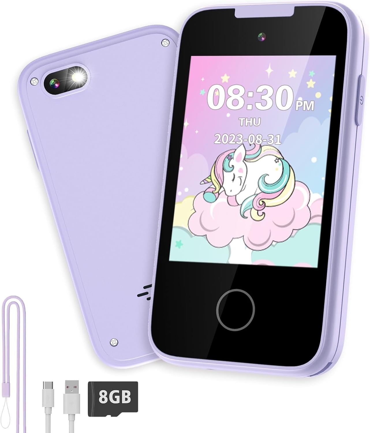 • ?【Multi-functional Phone for Kids】With 2.8” touchscreen, kids phone has rich features, including camera, video recording, habit tracker, ABC alphabet, stories, music, torch, voice recorder, 13 games, calculators, stopwatches, alarm, etc The kids smartphones can satisfy kids' curiosity. Great toys for ages 5-7 as a girl birthday gift ideas.
