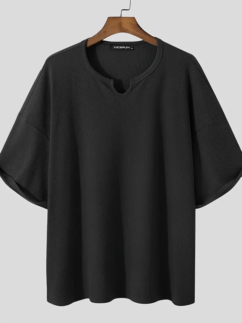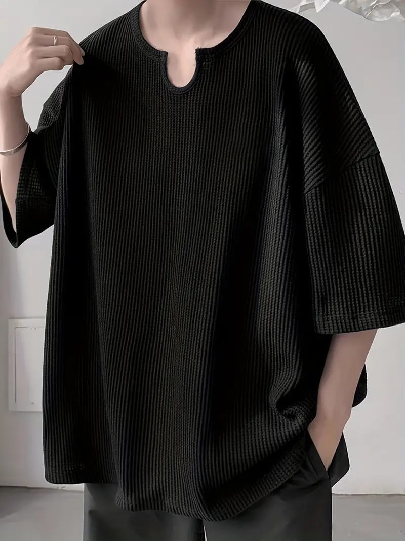 Plus Size Men's Casual Streetwear Tops Solid Textured Fashion Loose Drop Shoulder T-shirts