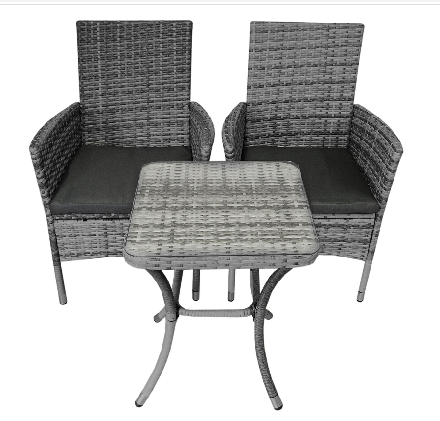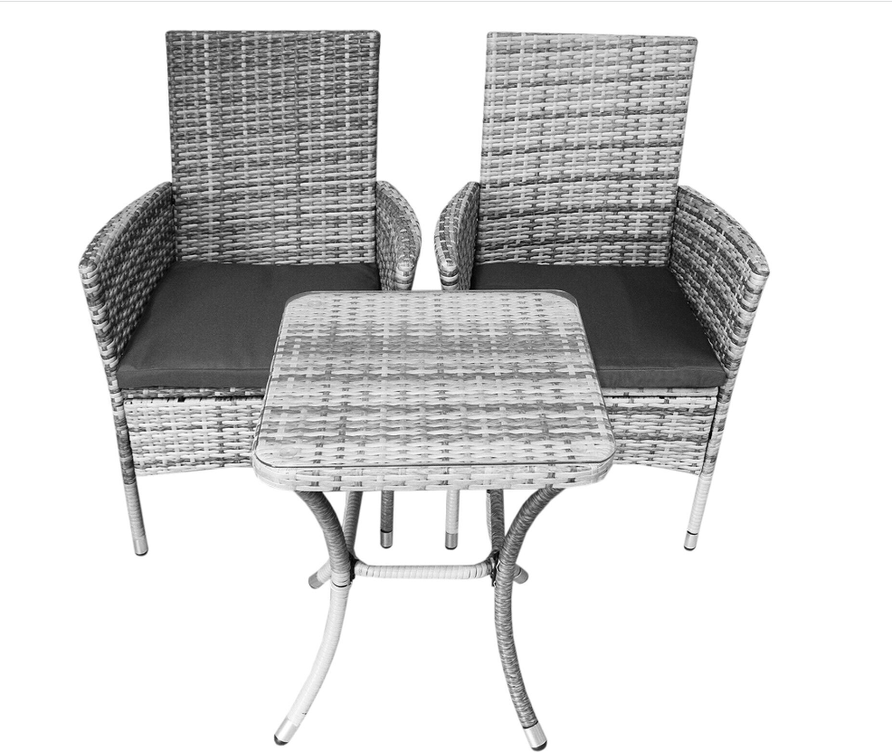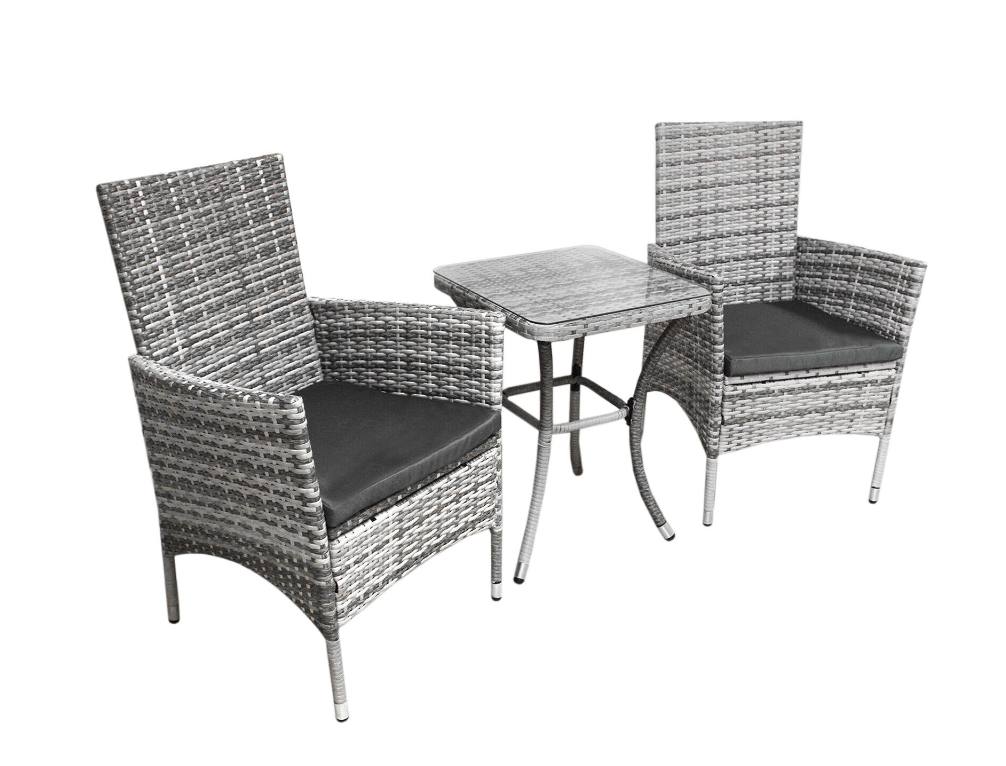 Designed for maximum style and comfort, this exquisite bistro set has 5cm thick cushions, seats 2 people and is sure to be the perfect centrepiece for any garden tea party. Transform your garden into a private paradise and be the envy of all your friends with this premium seating set. The easy-to-assemble flat-pack furniture enables you to relax outside with a drink in little to no time.
