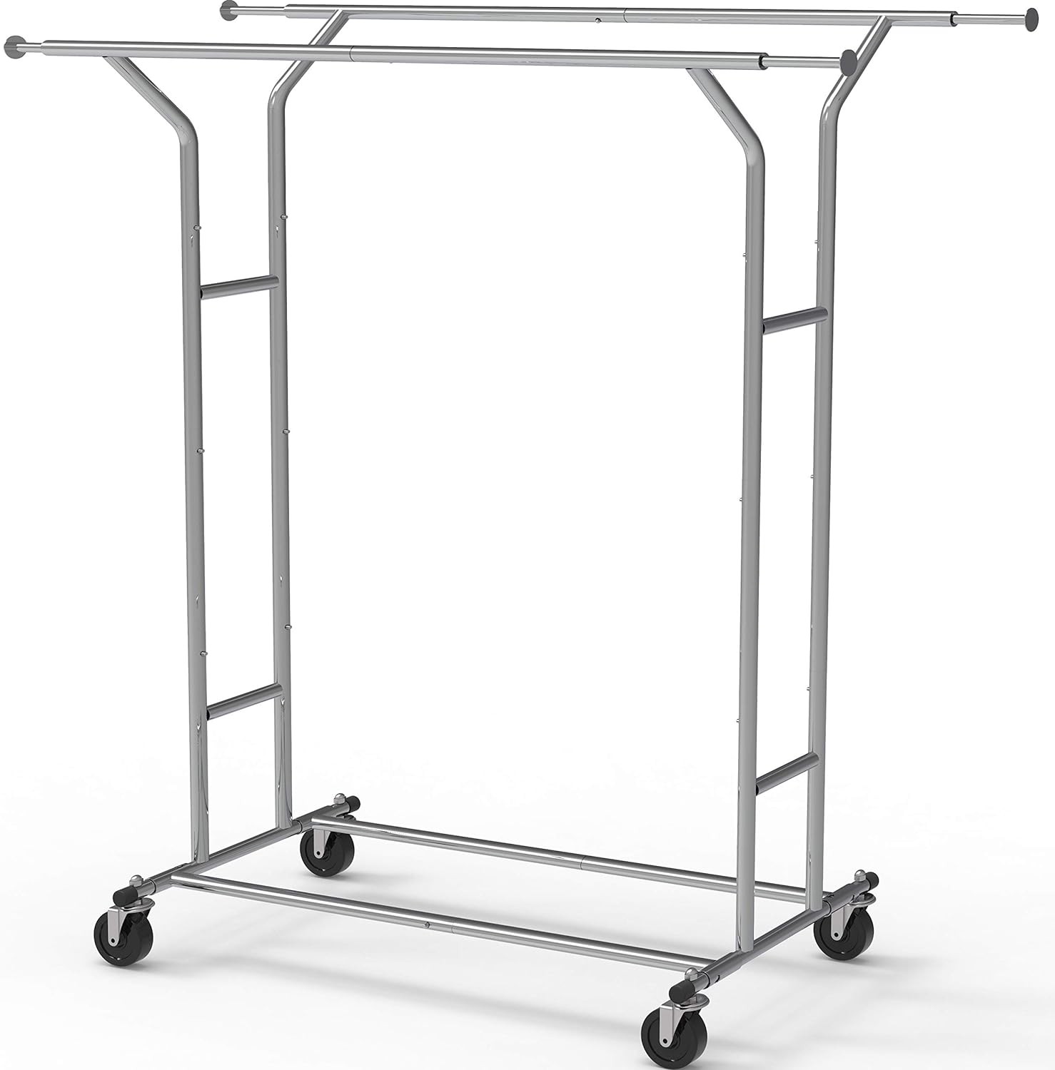 Simple Houseware Heavy Duty Double Rail Clothing Garment Rack, Chrome